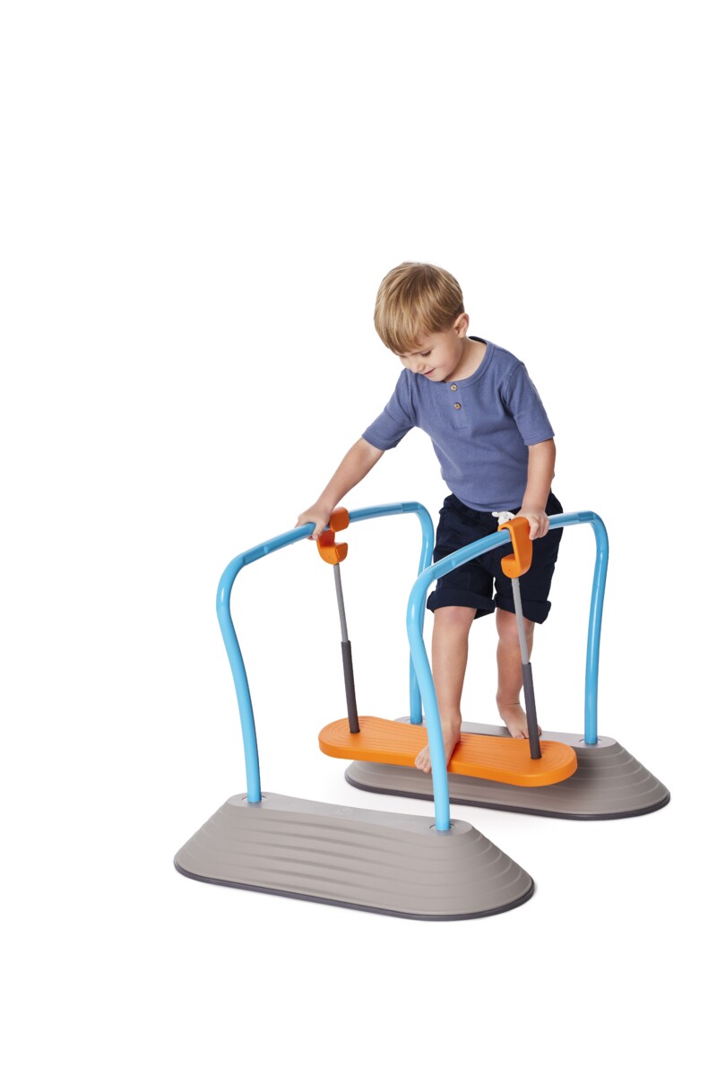 En stabil planka i två starka rep till GONGE® Mini Parkour (134749). Den hängande plankan rör sig när den trampas på, vilket kräver koncentration och stimulerar balans och muskelstyrka. Max belastning 50 kg. Av PP, TPE och stål. PVC-fri. Från 3 år.