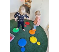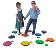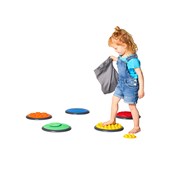 Detta set innehåller 10 st mjuka, cirkelformade markeringsplattor av silikon. 5 stora och 5 små cirklar som barnen kan matcha med varandra eller känna skillnader i texturen med både händer och fötter. Kan användas med ögonbindel, eller gömmas i den medföljande påsen för att hitta matchande par. Halksäkra. Mått på liten cirkel ø 8 cm, stor cirkel 25 cm. PVC-fri. Från 3 år.