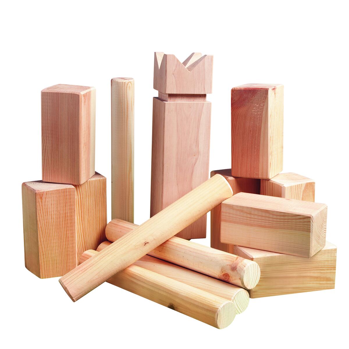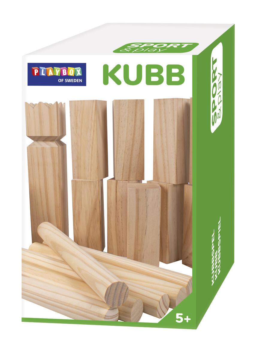 Spelas av 2-12 deltagare fördelade på 2 lag. Det gäller att slå ner samtliga kubbar på motståndarnas planhalva med hjälp av hantlarna, kungen sist. Ett spel med anor från medeltiden. Består av 10 kubbar, 1 kung och 6 hantlar i massivt trä. Kungens mått: 30x6,5 cm, kubbarnas mått: 15x5,5 cm, hantlarnas mått: 30x3,5cm. Av FCS- märkt trä. PVC-fri. Spelregler medföljer. Från 5 år.