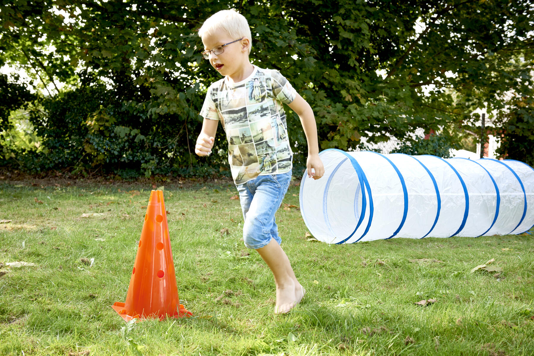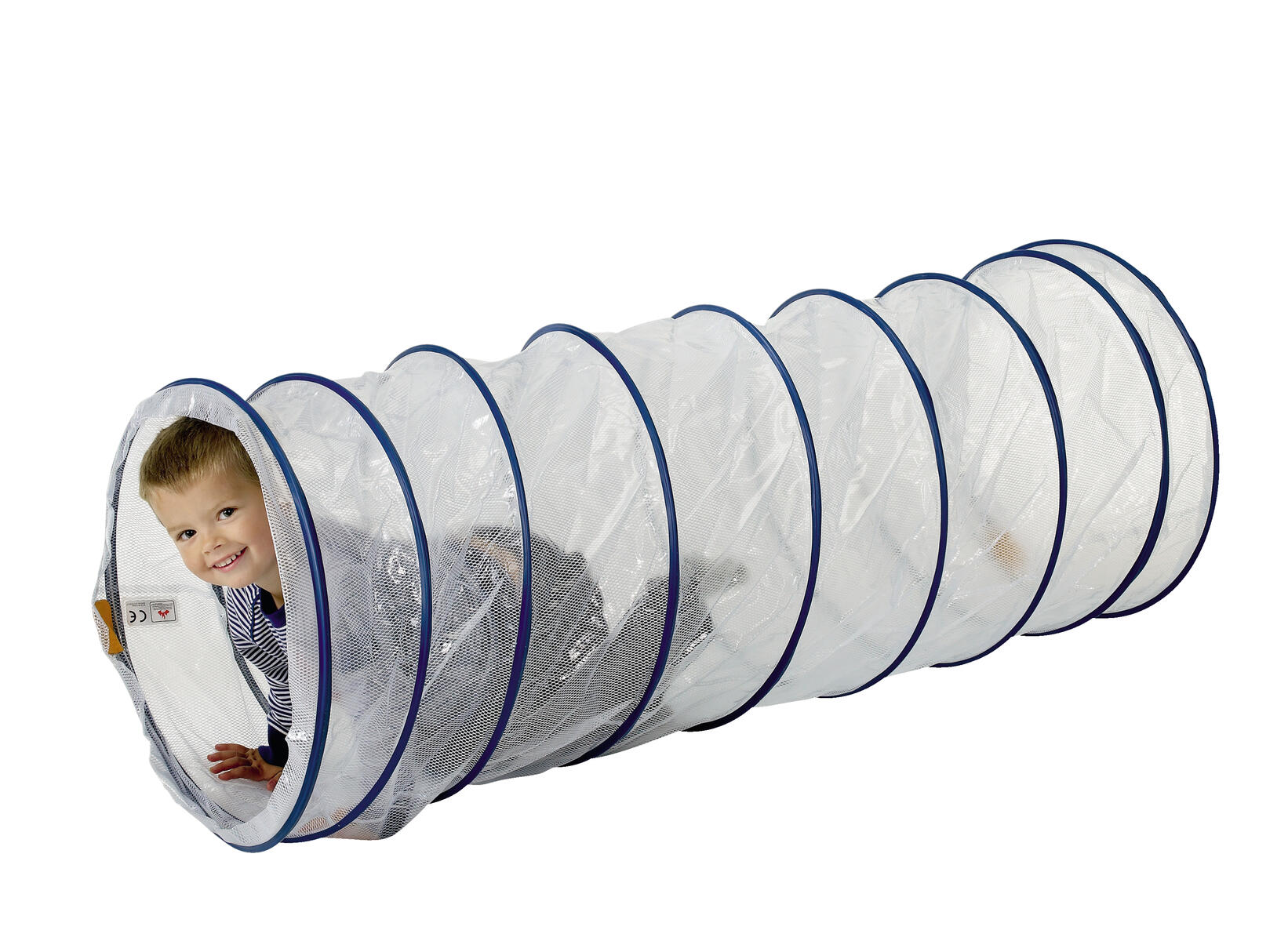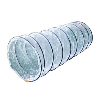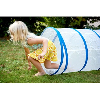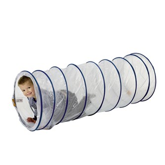 En tunnel i kraftig och slitstark transparent plast med fasta ringar. Här får barnen bra grovmotorisk träning, utan att behöva känna sig innestängda, eller vara rädda för mörker. Kan vikas ihop för att spara plats vid förvaring. Av PVC, utan förbjudna ftalater. Mått: längd 180 cm, ø 57 cm. Från 3 år.