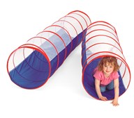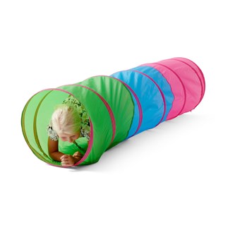 Denna långa tunnel kan vridas och böjas i önskad riktning för att konstruera spännande krypvägar. Tunnelns ena sida är av finmaskigt nät så att barnen kan kika ut. Perfekt för både inom- och utomhuslek samt motoriska övningar. Tillverkad av slitstark nylon. Mått: längd 280 cm, ø 53 cm. PVC-fri.