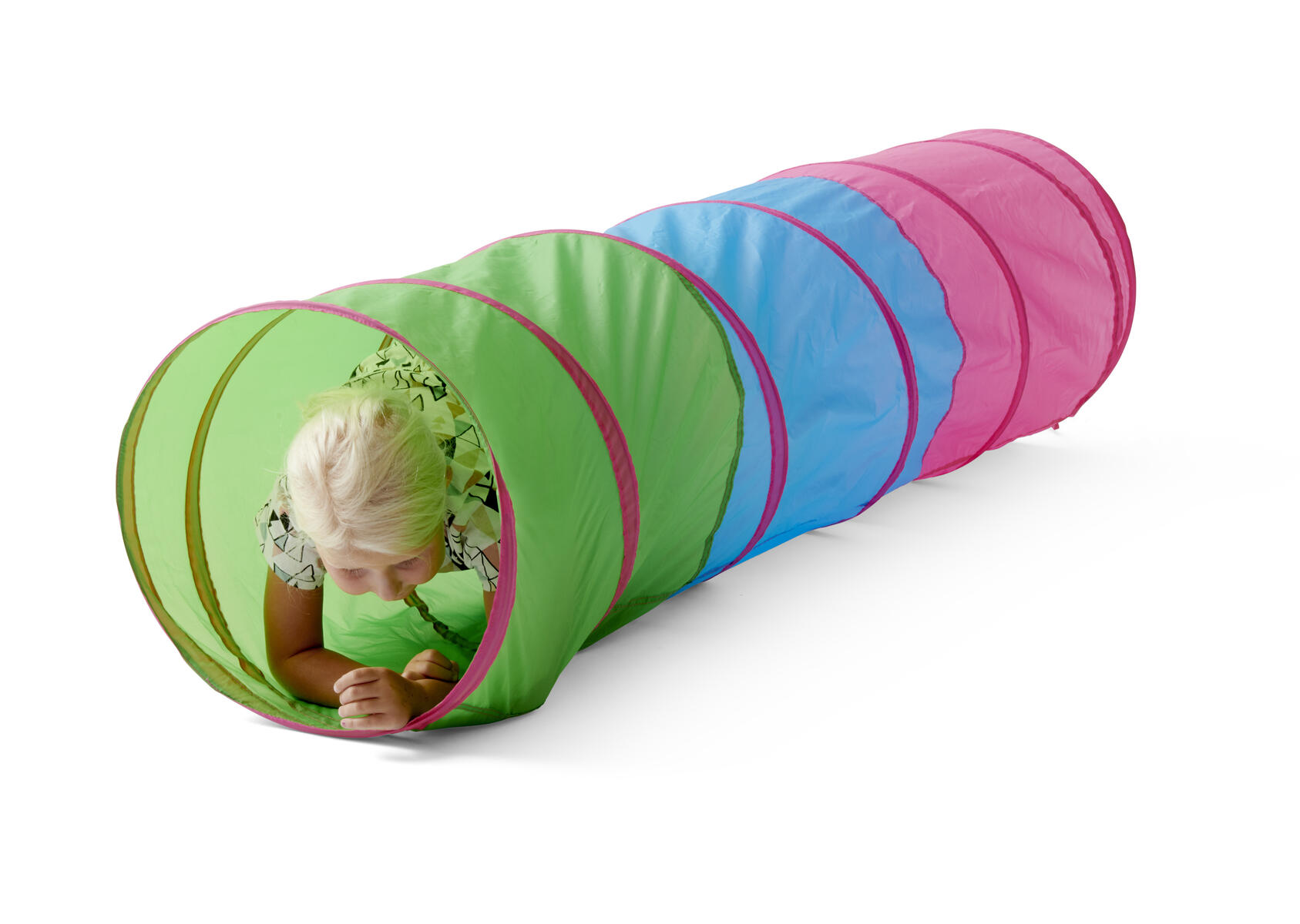 En tunnel i kraftig och slitstark transparent plast med fasta ringar. Här får barnen bra grovmotorisk träning, utan att behöva känna sig innestängda, eller vara rädda för mörker. Kan vikas ihop för att spara plats vid förvaring. Av PVC, utan förbjudna ftalater. Mått: längd 180 cm, ø 57 cm. Från 3 år.