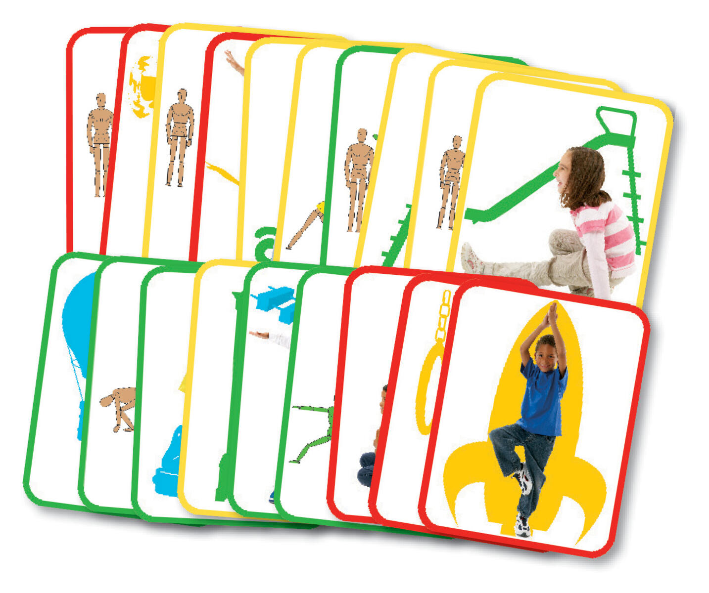 16 kort med rörelser som främjar motoriken. Hoppa, stretcha, böj och klättra – alla rörelser man behöver. Gröna kort är enkla och röda kort lite svårare. Perfekt övning att göra i klassrummet. Mått: 28x21 cm. Av kartong. PVC-fri. Från 3 år.