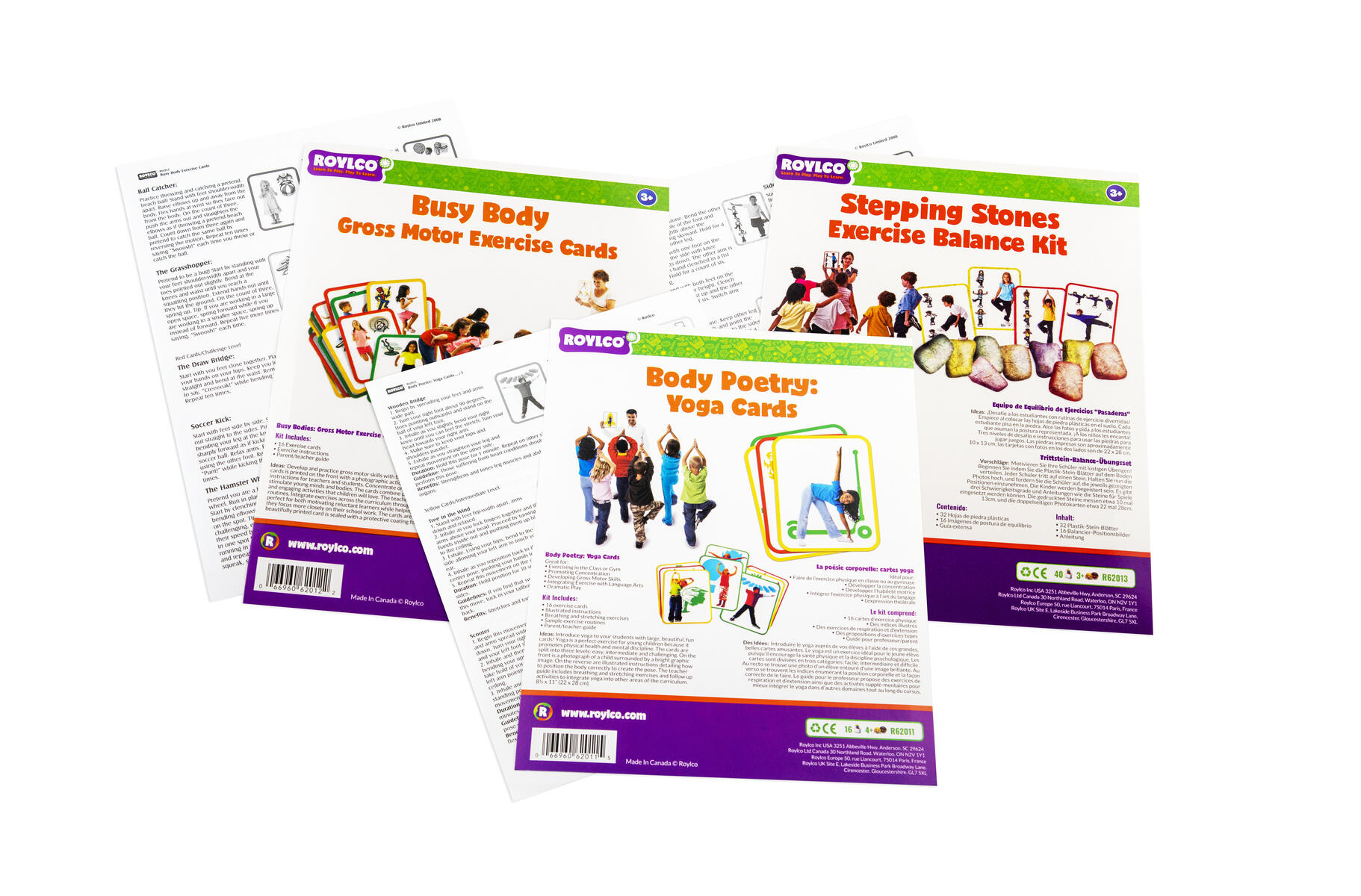 Träna grovmotorik och balans med roliga poser och rörelser. 8 dubbelsidiga kort låter barnen testa vilken nivå de klarar av. Gröna kort är enkla och röda kort lite svårare. Lägg ut de medföljande stenarna på golvet så kan barnen fokusera på var de ska stå och göra sina rörelser. Perfekt övning att göra i klassrummet eller när en grupp är samlad i mindre utrymmen. Mått: 28x21 cm. Av kartong. PVC-fri. Från 3 år.