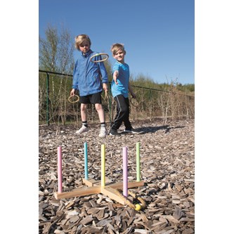 Klassiskt spel där det gäller att pricka ett hål i en bräda med ärtpåsar, även kallat corn hole. Två brädor och åtta ärtpåsar ingår. Kasta ärtpåsarna på brädan och försök få 21 poäng. Enkla spelregler gör att spelare i alla åldrar kan vara med. Spelet kan spelas var som helst, bara du har ett plant underlag. Brädorna är 60x30 cm. För 2 spelare. Av MDF, PS och nylon. Från 3 år.