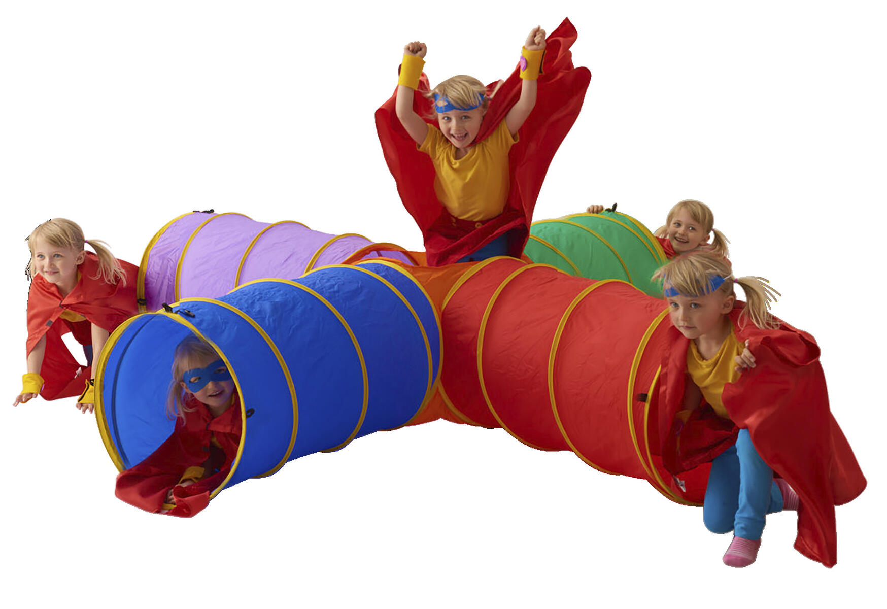 Megatunneln är en av de största kryptunnlarna på marknaden. Starka härliga färger gör den inbjudande och visuellt spännande för barnen. Flera tunnlar kan låsas till varandra, ände mot ände, för att bilda en oändlig variation av banor. Enkel att fälla ihop och tar då väldigt lite plats. Mått: L3,7 m, ø 91,4 cm. Av polyester. PVC-fri. Från 3 år.