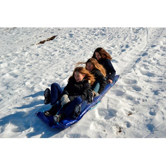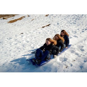 Åkmadrass med plats för två personer. Tillverkad i slitstarkt material och som glider bra. Mjuk och bekväm att sitta på samt lätt att bära. Olika färger. Storlek L120xB50x5 cm. Av PVC utan förbjudna ftalater, polyuretan och polypropen. Från 3 år.