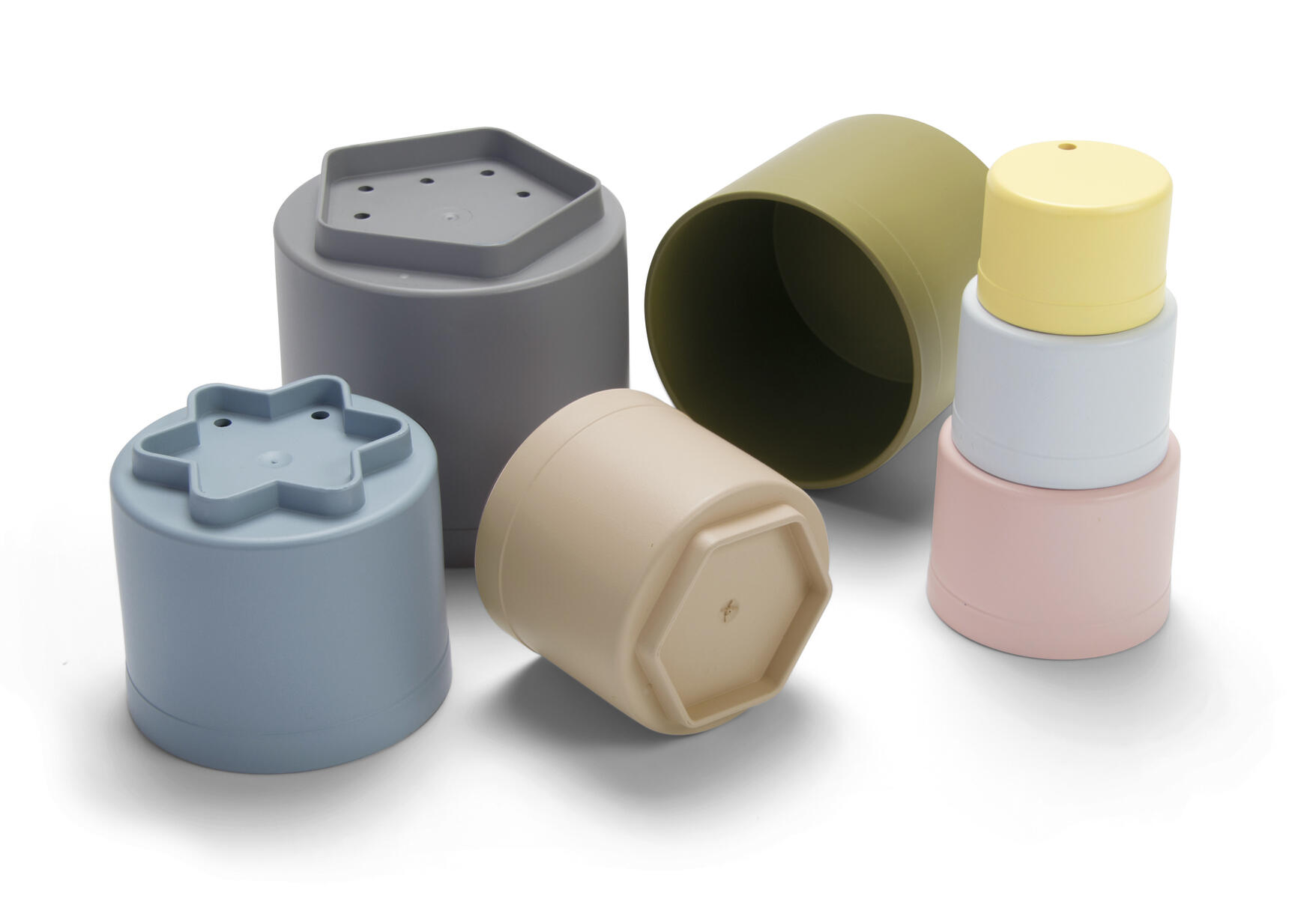 Bägarna har mönster på undersidan som gör att de passar utmärkt att använda som sandformar i sandlådan. Tillverkade av bioplast baserad på sockerrör och 100 % återvinningsbara. PVC-fri. Tål frost. Kan diskas i diskmaskin. Från 6 mån. Svanenmärkt, licensnummer 50950001.