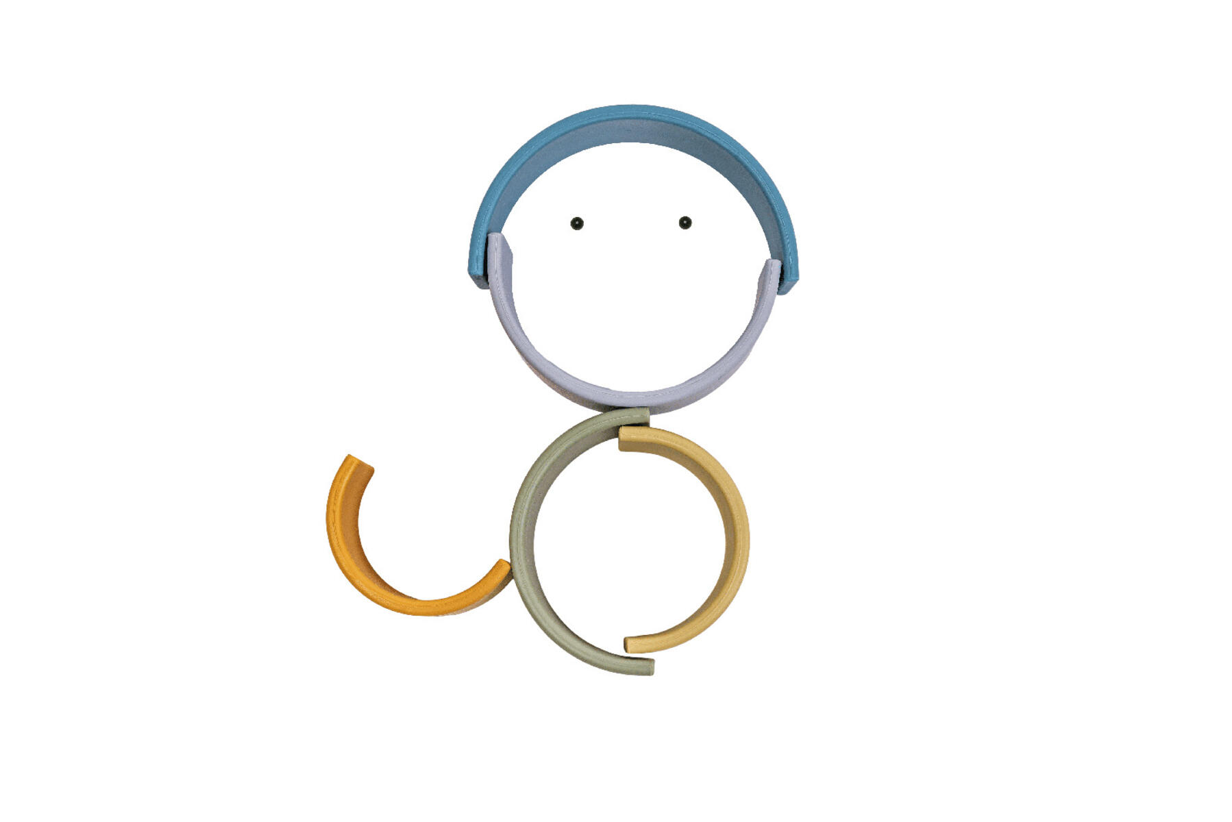 6 delar. Byggset i trä där bitarna tillsammans skapar en vacker regnbåge. Bitarna kan användas som t.ex. tunnlar och broar tillsammans med andra typer av klossar. Yngre barn kan stapla och sortera klossarna. Målade med giftfria, vattenbaserade färger. PVC-fri. Från 1 år.