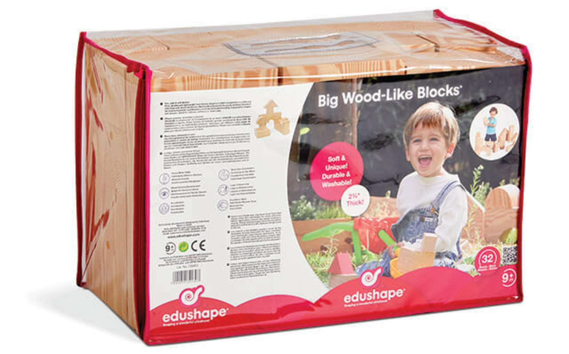 32 delar. Mjuka träliknande klossar i olika former. De är lätta att bygga med och passar för både ensam- och grupplekar. Barnen övar sin förmåga att konstruera och utvecklar sin fantasi. Av EVA. PVC-fri. Från 9 månader.
