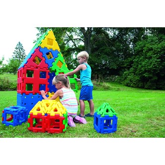 24 delar. Stora byggklossar för stora skapelser både inom- och utomhus. Klossarna är enkla att sätta ihop och lämpar sig väl för samarbete. Innehåller 16 kvadrater och 8 trianglar. Passar bra att kombinera med art 12900 Polydron byggklossar. Tvättråd: Handtvätt med mild ytdesinfektion. Av PE. PVC-fri. Från 2 år. Kompatibelt med Polydron XL naturfärger samt Polydron XL Geo Dome.
