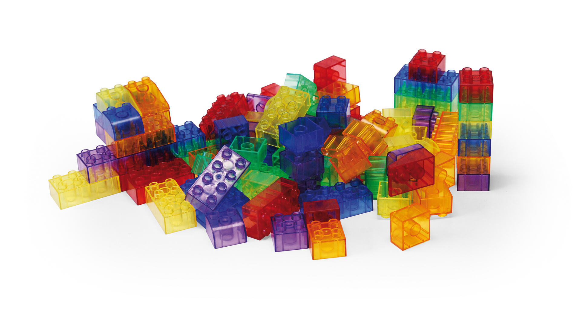 90 delar. Transparenta byggklossar i 6 färger och 4 olika storlekar. Klossarna är lätta att bygga med och utvecklar barnens motoriska färdigheter. Kan med fördel användas på ljusbord. Av ABS och PP. Från 1,5 år.