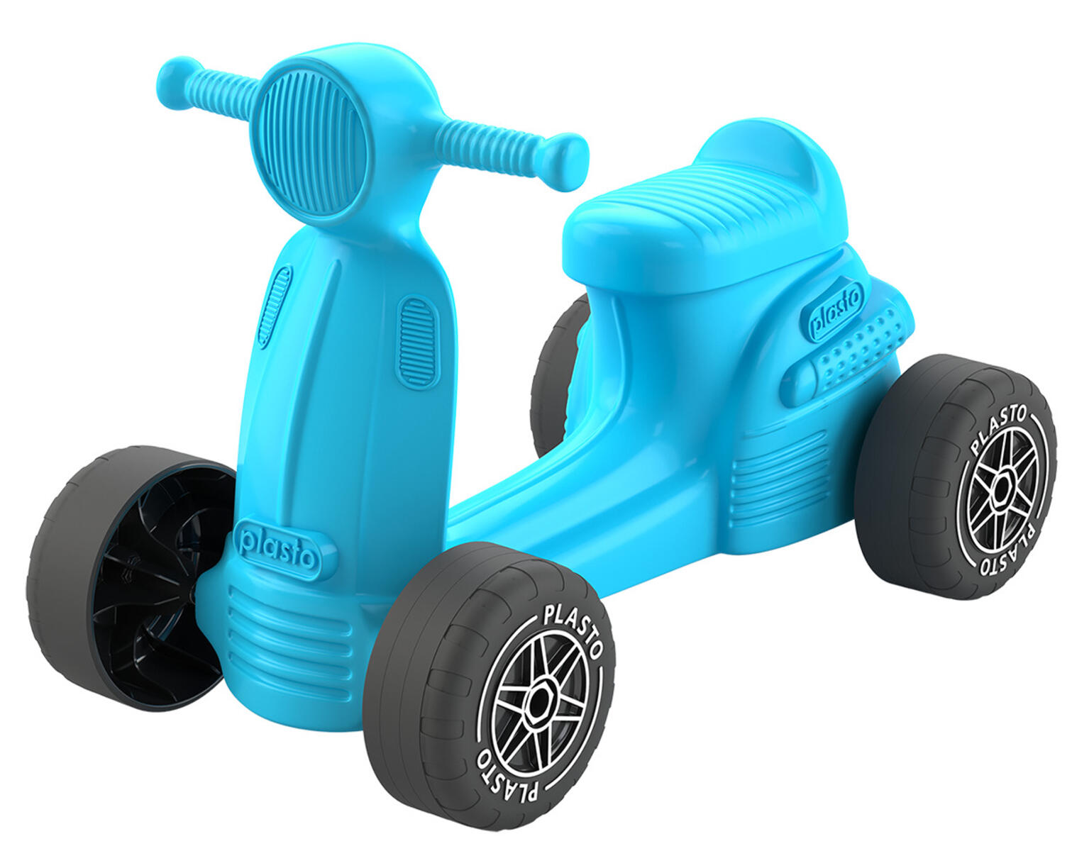 Med denna fräcka scooter sparkar barnen sig fram och utvecklar då sin koordination och motorik. Men tysta hjul av TPE. Sitthöjd 22 cm. Av livsmedelsgodkänd polyetenplast. Kommer i blandade färger. PVC-fri. Från 1,5 år.