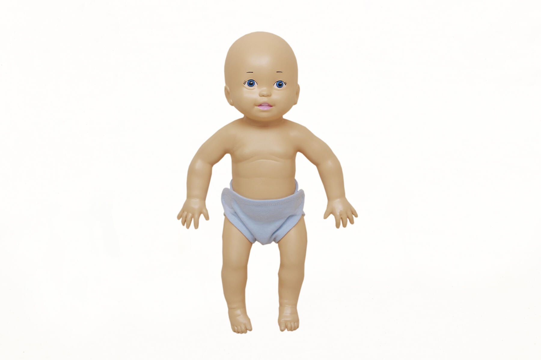Docka med mjukstoppad kropp och blundögon. Längd 40 cm. Dockans armar, huvud och ben är tillverkade av PVC, utan förbjudna ftalater. Handtvätt. Från 2 år.