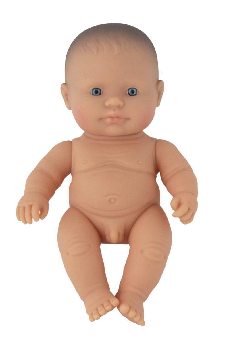 Docka med mjukstoppad kropp och blundögon. Längd 40 cm. Dockans armar, huvud och ben är tillverkade av PVC, utan förbjudna ftalater. Handtvätt. Från 2 år.