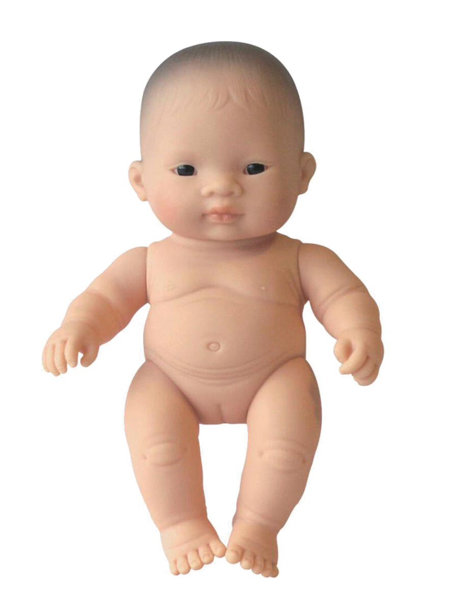 Fin liten docka med hård kropp och verklighetstrogna hudveck. Av PVC, utan förbjudna ftalater. Från 10 månader.