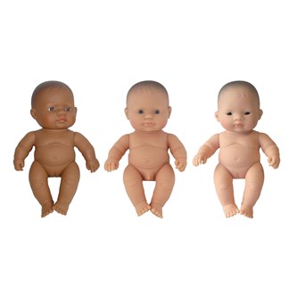 3 st/fp. Paket med dockorna Malin, Marika och Martin. Verklighetstrogna dockor med hård kropp. Längd 38 cm. Av PVC, utan förbjudna ftalater. Från 3 år.