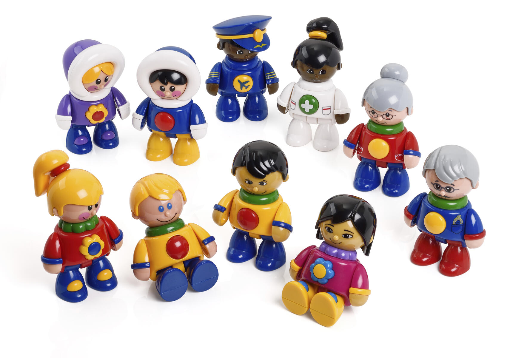 8 st/fp. Rörliga figurer från hela världen som alla representerar olika yrken. Här kan barnen utforska olika kön och roller med anknytning till sin omvärld. Rörliga armar och ben; ledljud bekräftar rörelsen. Använd knappen på magen för att skapa mer ljud. Mycket rejäl och tålig kvalitet av ABS. PVC-fri. Från 1 år.