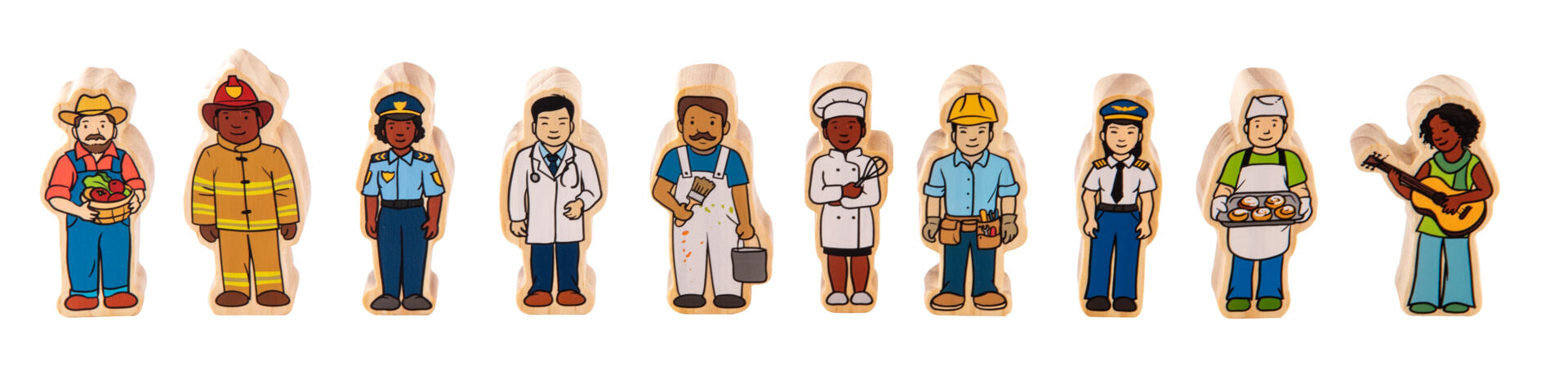 10 st/fp. Detta set är perfekt för rollspel, berättande och för att göra byggleken mer levande. Människorna i staden representerar flera av våra vanligaste yrken. Högkvalitativa träfigurer med tryck på bägge sidor. Av FSC-märkt trä. PVC-fri. Från 1 år.