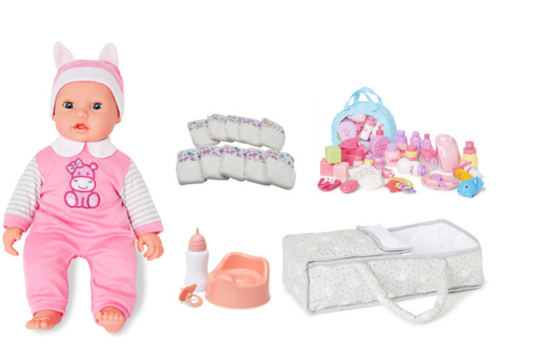 30 delar/fp. Ett stort set med docktillbehör. Setet innehåller bland annat nappflaskor, en potta, leksaker, napp, tallrikar och bestick samt leksaksmat. Allt får plats i en praktisk väska för enkel förvaring. Material av HIPS, LDPE och PE. PVC-fri. Från 3 år.