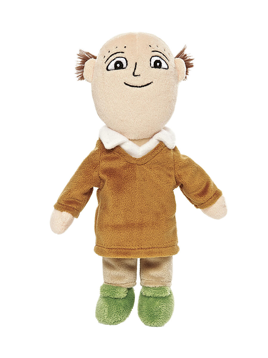 Alfons är en snäll och rolig pojke som bor tillsammans med sin pappa, låtsaskompisen Mållgan och katten Pussel. Här är Alfons som mjukisdocka. Han är iklädd en brun tröja och bruna byxor med en lapp på knäet. Docka helt i textil vilket gör den säker även för små barn. Mått: ca 33 cm. 100 % polyester. PVC-fri.