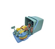 Innehåller hinkar, spadar, sandsåll, krattor, vattenkannor, sandhjul, byggbägare, sand- och vattenskopor samt sandformar i olika storlekar. Tål minusgrader. Av PP. Svanenmärkt, licensnummer 50950001. PVC-fri. Från 2 år.
