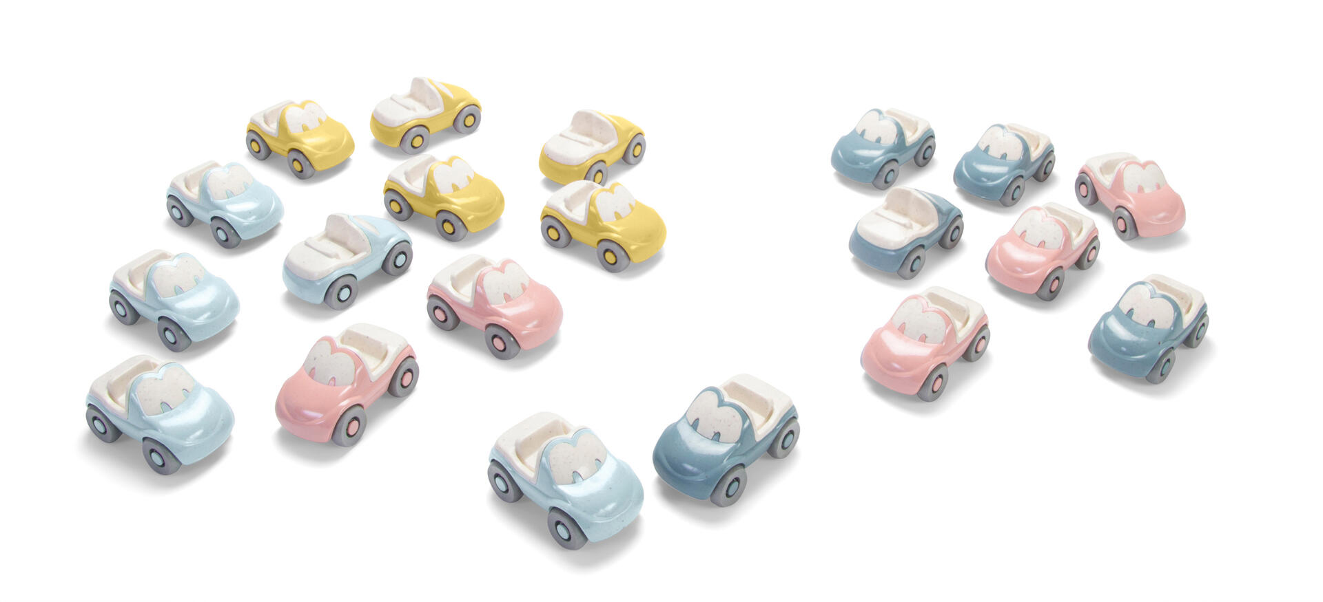 20 st/fp. Färgglada bilar med roliga ansikten. Kan användas både inne och ute. 100 % återvinningsbara. Tål frost. Tillverkade av bioplast baserad på sockerrör. Mått: 9x6x6-7 cm. PVC-fri. Kan diskas i diskmaskin. Från 6 månader. Svanenmärkta, licensnummer 50950001.