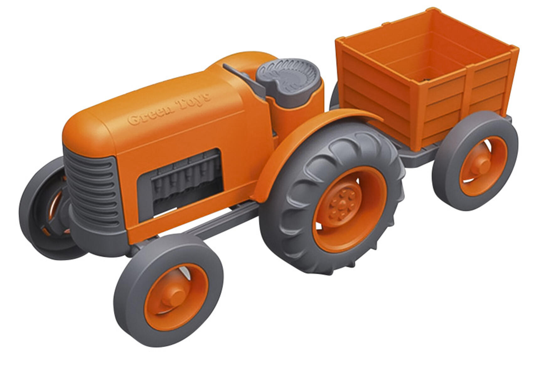 En traktor med släp som kan kopplas av och på. Tillverkad av helt återvunnen och livsmedelsgodkänd plast. Längd med släp 30 cm. Kan användas både inom- och utomhus. Av polyeten HD. Från 1 år. PVC-fri.