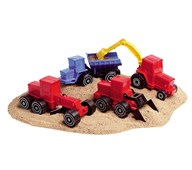 Fordonen kan användas för att leka ensam eller tillsammans med andra barn. Alla arbetsfordon är av starka och klara färger. Med hjälp av de rörliga delarna såsom tippbart lastflak och grävskopor på fordonen blir leken mer verklig. Mått: ca 15–55 cm. Av PE. PVC-fri. Från 2 år.