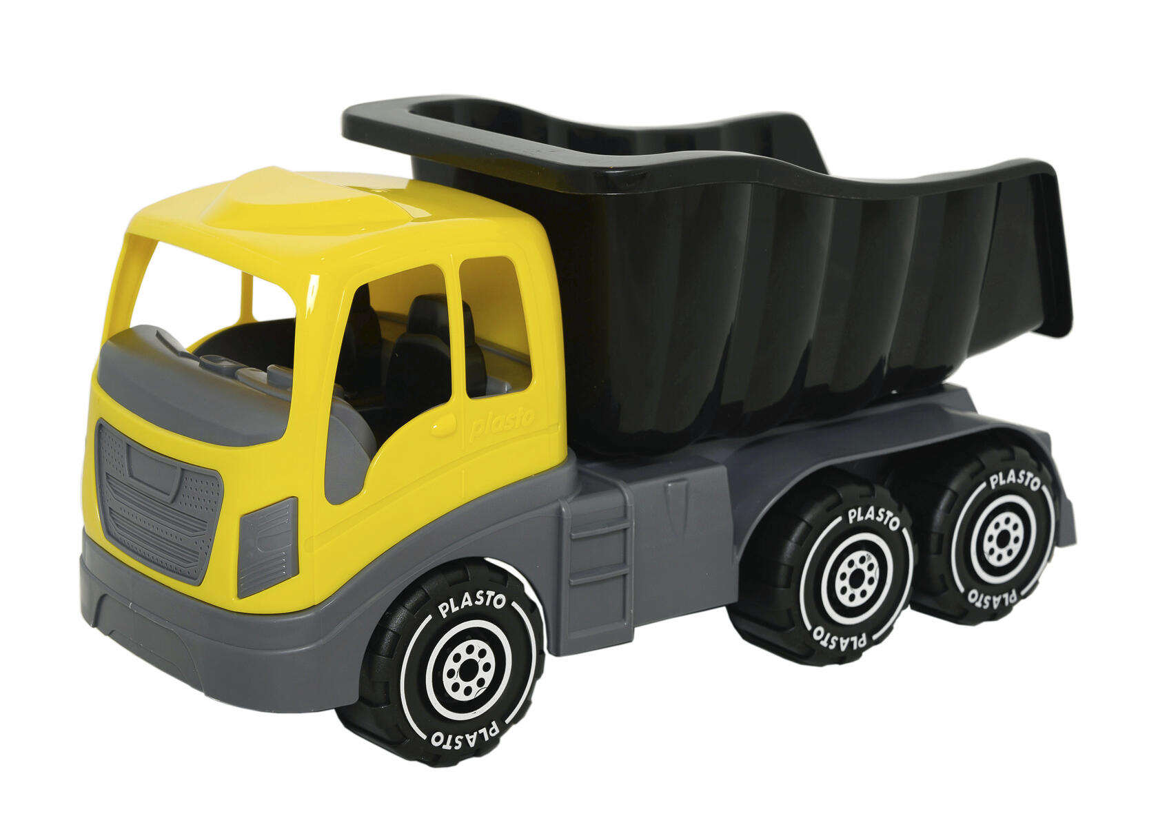 Med denna 4-axlade dumper kör man säkert både på väg och ute i terrängen! Flaket kan tippas. Längd 40 cm. Av livsmedelsgodkänd polyetenplast. PVC-fri. Från 1 år.