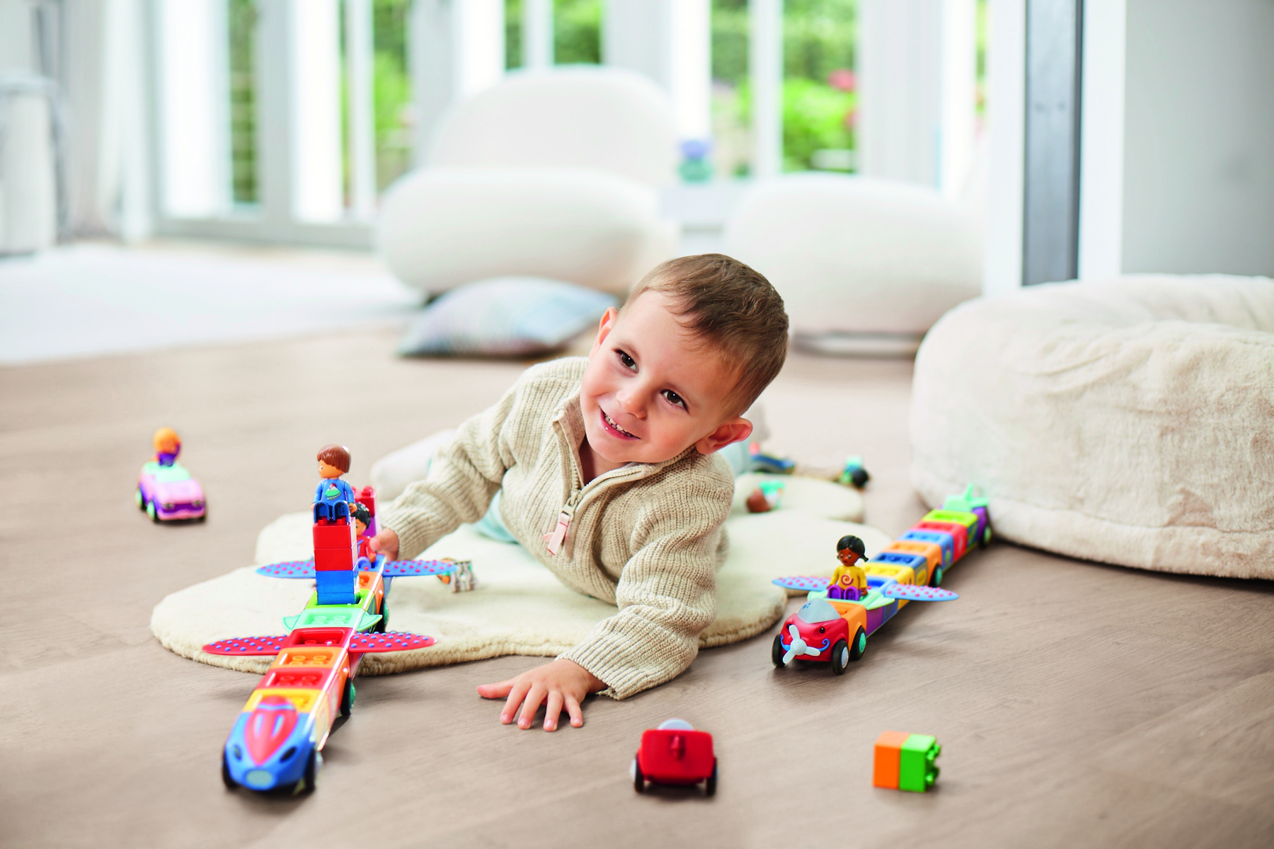 Fordonen kan användas för att leka ensam eller tillsammans med andra barn. Alla arbetsfordon är av starka och klara färger. Med hjälp av de rörliga delarna såsom tippbart lastflak och grävskopor på fordonen blir leken mer verklig. Mått: ca 15–55 cm. Av PE. PVC-fri. Från 2 år.