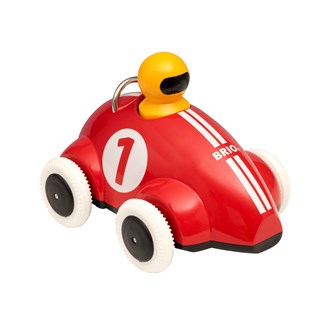 Den klassiska racerbilen i trä från BRIO sätter fart på barn i alla åldrar. Lätt att greppa. Med hjul av PE-EVA för tystare lek. Blandade färger. Av bokträ. PVC-fri. Ca 14 cm. Från 1 år.