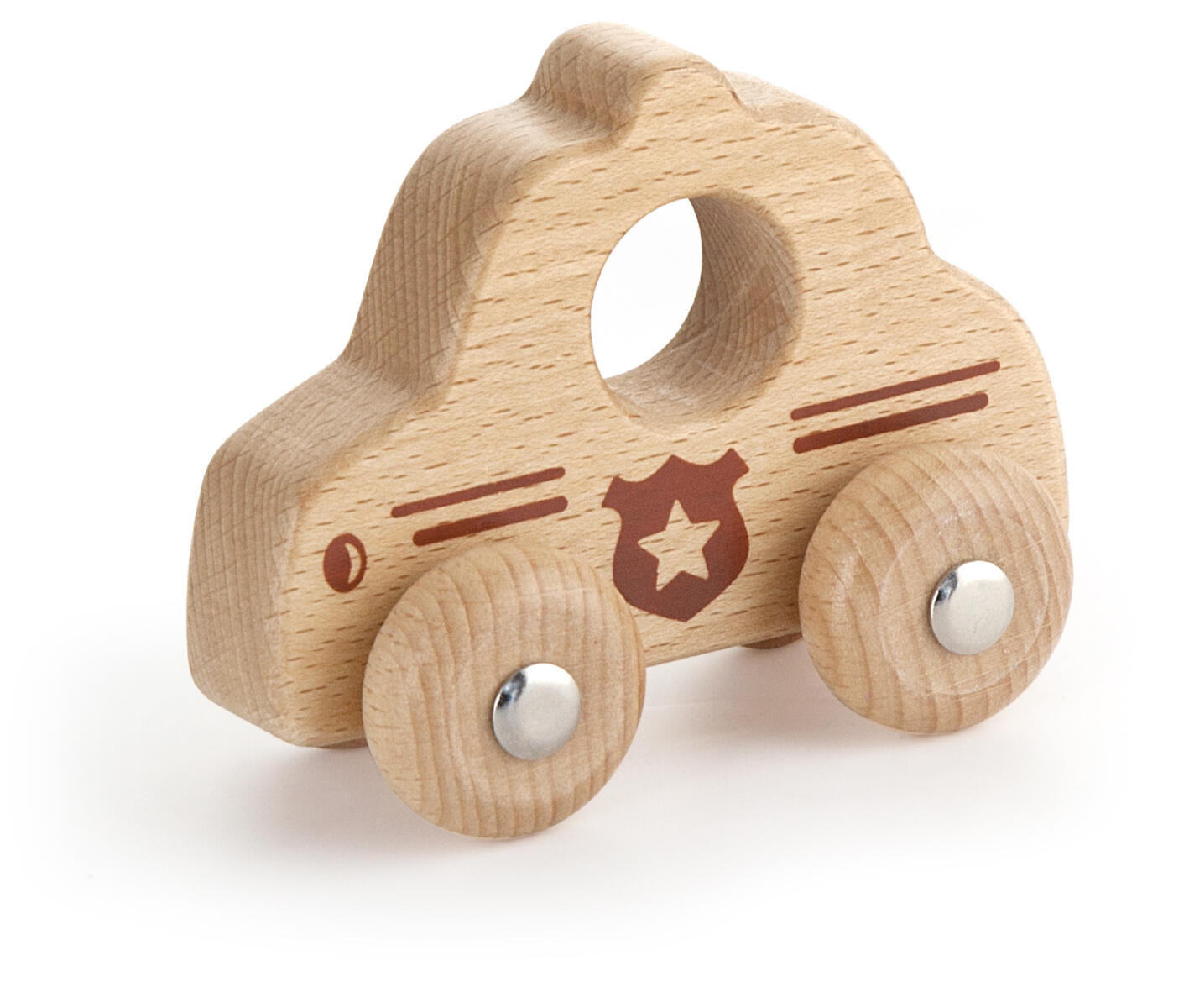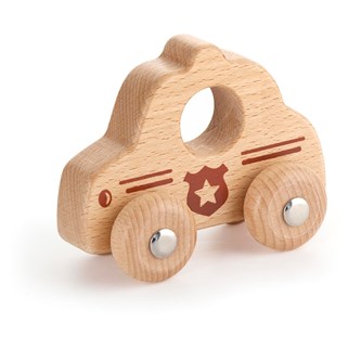 Polisbil i FSC-märkt naturfärgat bokträ som är i rätt storlek för små händer att greppa. Den har mjuka kurvor och rundade hörn för barnets säkerhet. Mått: 9x7,5x4,3 cm. PVC-fri. Från 18 månader.