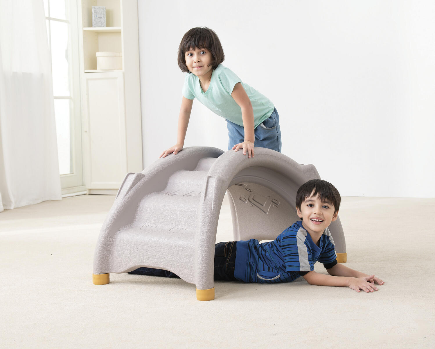 Tunnel i trä som både är en gunga och en tunnel. Både balans och koordination tränas när man kryper under eller klättrar över den. De fyra handtagen underlättar rörelsen och säkerställer säkerhet vid gungning. Tillverkad av plywood, lackerad och målad med vattenbaserad färg. Levereras omonterad. Mått: L106xB51xH38 cm. Vikt: 50 kg. PVC-fri. Från 2 år.