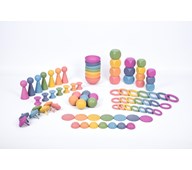 84 delar delar. Vackra träbitar i bokträ i regnbågens sju färger, med en naturlig finish för att visa träet. Idealisk för att skapa fantasifyllda scener, uppmuntra konstruktionsförmågan, räkna och sortera, stapla och lära sig mer om färg. Innehåller 84 träbitar, 7 i varje form och storlek. Av FSC-märkt trä. PVC-fri. Från 10 månader.