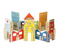 17 delar. Tre härliga trähus i fina färger som kan användas som pussel när de inte används i barnens bygglek, eller som rekvisita till spännande berättelser. Bygg de tre husen med setets delar, eller egna kreationer tillsammans med andra byggklossar. Målade med giftfria, vattenbaserade färger. (Dockfigurer ingår ej). PVC-fri. Från 1 år.