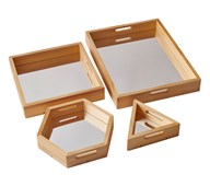4 st/fp. Brickor i FSC-märkt trä för att utforska reflektioner. Den speglande basen gör brickorna fängslande och de passar utmärkt för sortering. Använd med fördel mjuka produkter, då vassa föremål kan repa ytan. PVC-fri. Från 0 år.