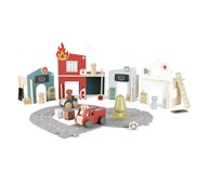 Med denna stad bjuds kreativ lek i oändlighet. Bygg din egen stad med de 26 olika delarna. Här finns t.ex. brandstation, stormarknad, polisstation och skola. Delarna sätts enkelt ihop. Komplettera gärna med 12056, Människorna i staden, för att skapa mer liv. Trädelarna är gjorda av FSC-märkt lindträ i hög kvalitet. PVC-fri. Från 2 år.