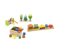 4 st/fp. Ett set med produkter som tränar geometriska former, koordination och sortering. Innehåller 12191 Sortera former, 144733 Bultbräda, 12192 Stapla geometriska former och 117943 Plocklåda. Av FSC-märkt trä. PVC-fri. Från 2 år.