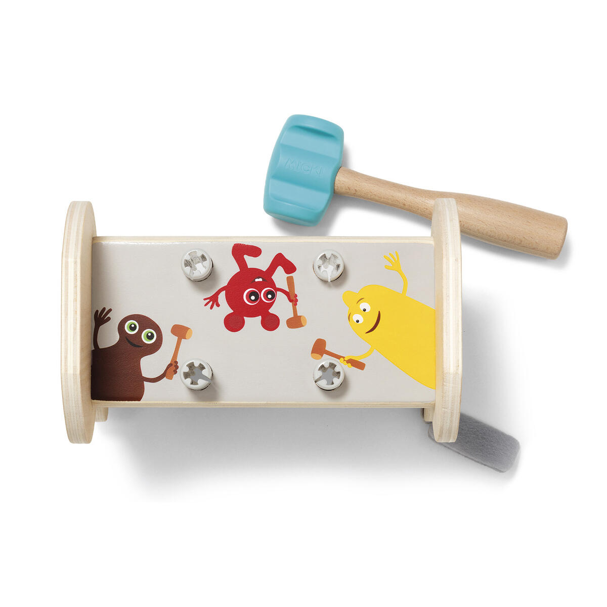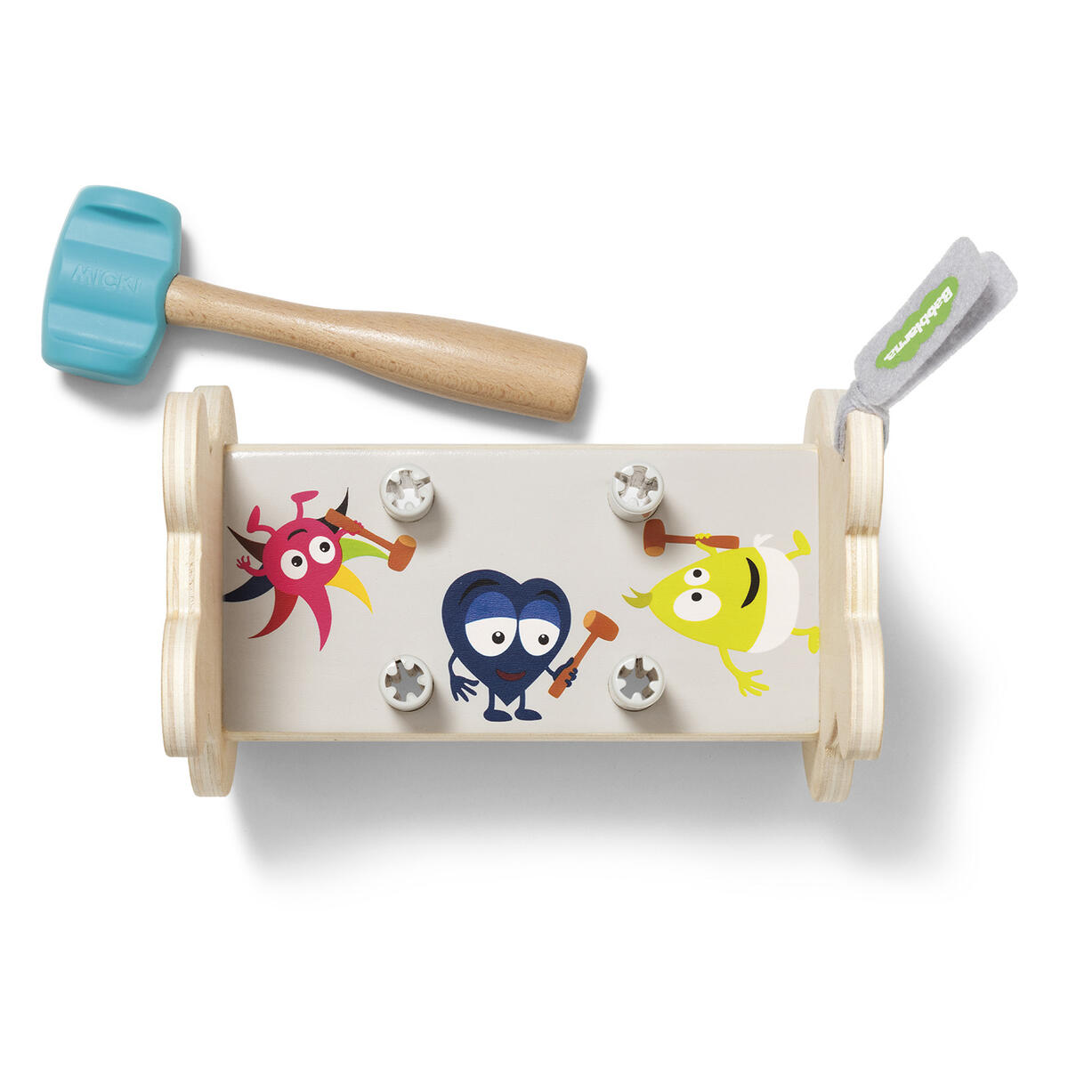 Bultbräda i klassiska färger. Den är både rolig och tränar koordinationen. Mjuk plast i benen gör att den står stabilt och inte lämnar märken på underlaget. Hammare med träskaft och plasthuvud. Av FSC-märkt trä. PVC-fri. Från 1 år.