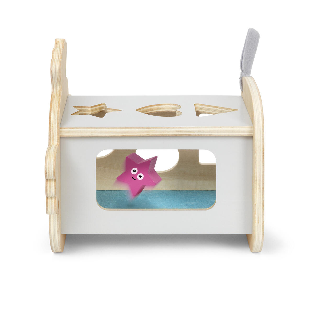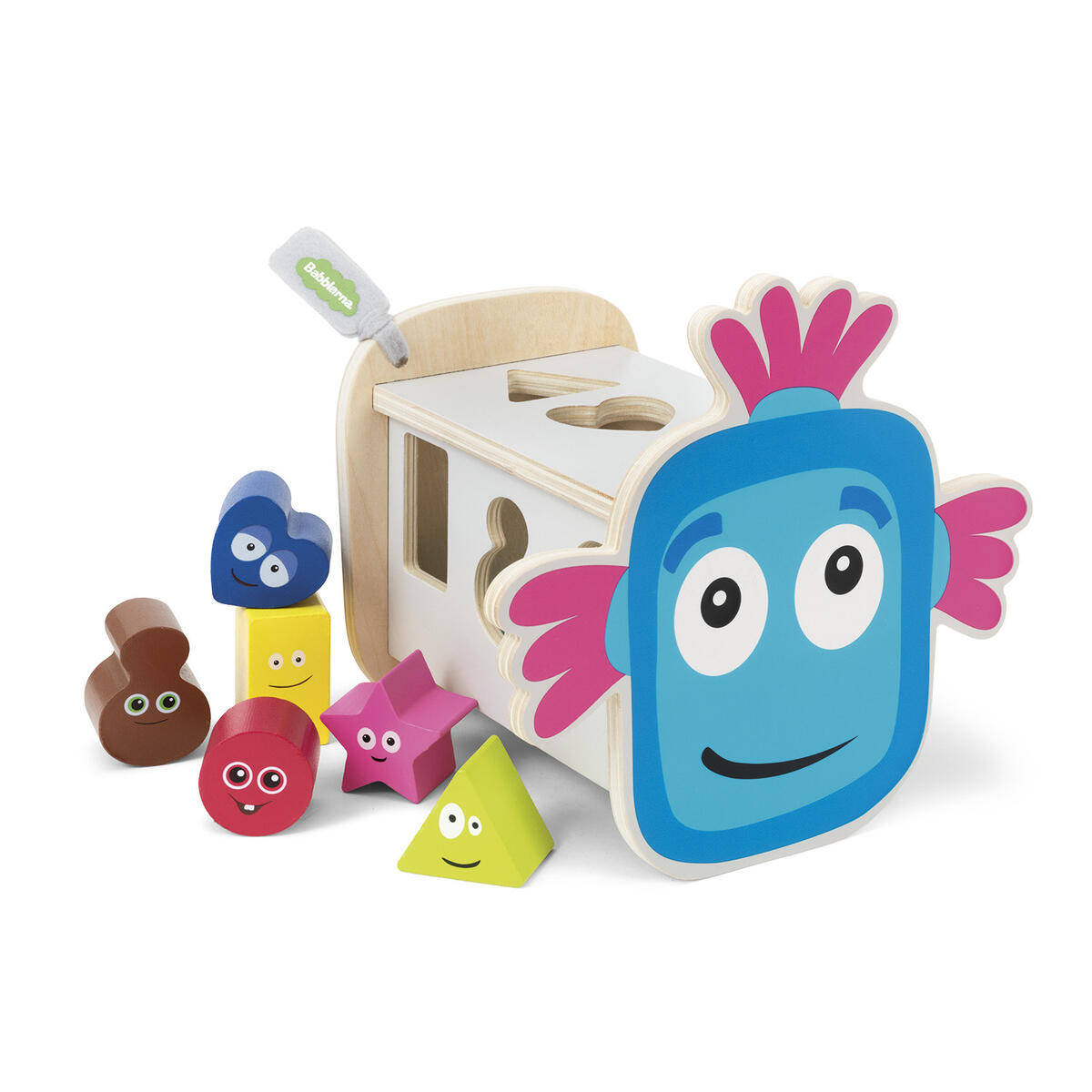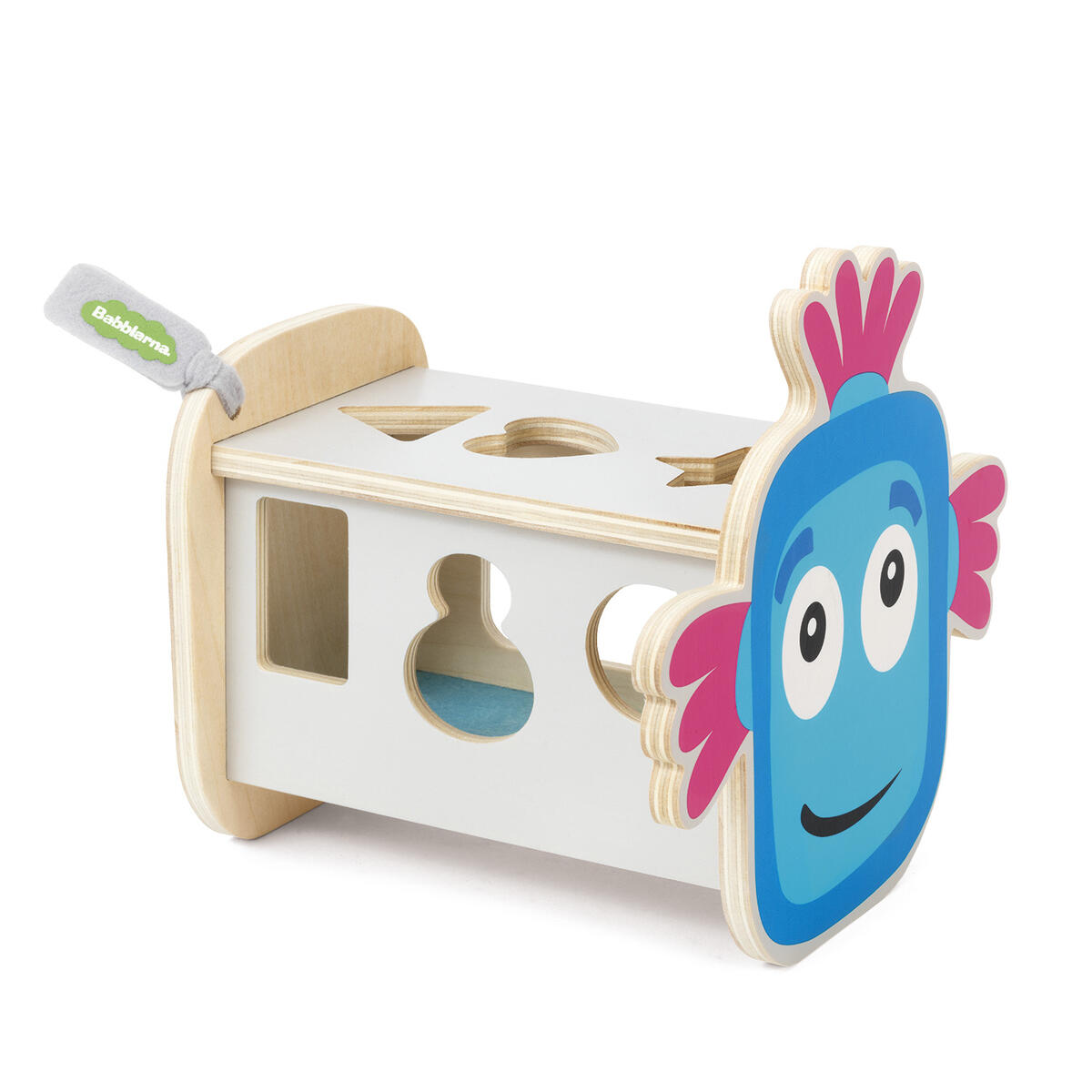 Babblarna plocklåda har stort lekvärde och barnen övar sin finmotorik. När barn babblar, pratar, sjunger och leker tillsammans med Babblarna, utvecklar de också sitt eget tal och språk. Plocklådan har formen av roboten Klonk. Klossarnas former är lätta för barnet att lära sig, men vilken av klossarna passar i vilket hål? Plocklådans botten är klädd med filt för att ge ett behagligt ljud när klossarna släpps ner. Mått: 17,5x20x19 cm. Av FSC-märkt trä. PVC-fri. Från 18 månader.