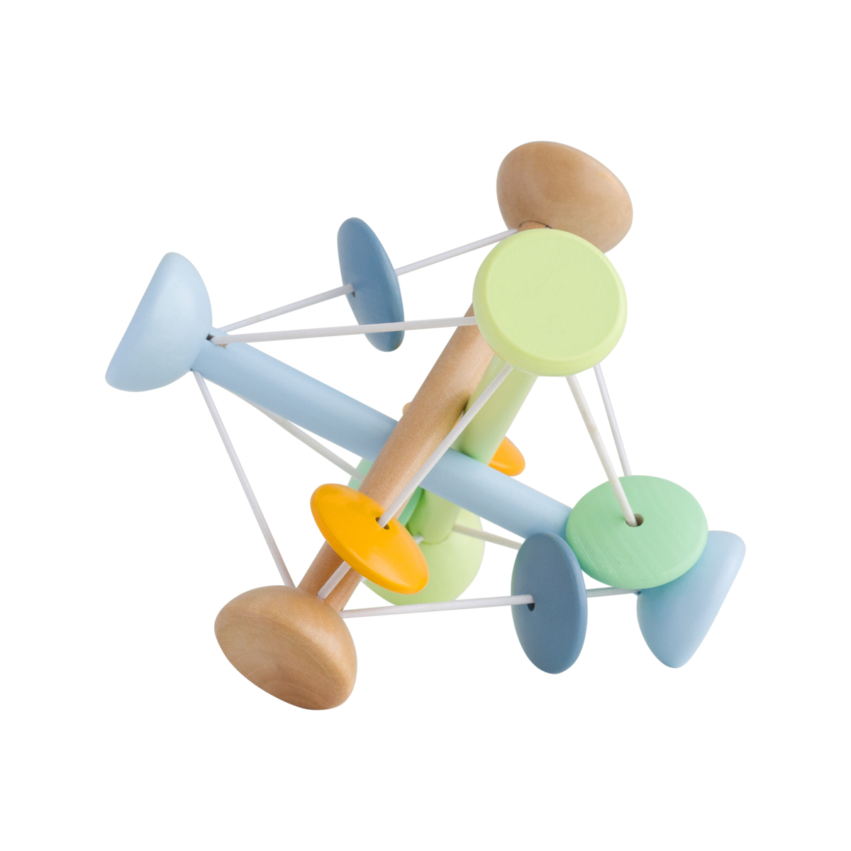 Med roliga färger och gummiband att dra och hålla i, kommer denna klassiska leksak att hålla barnen sysselsatta länge. Tränar motorik och öga- handkoordination. Mått: ca 15x15x15 cm. Av FSC-märkt-trä. PVC-fri. Från 18 månader.