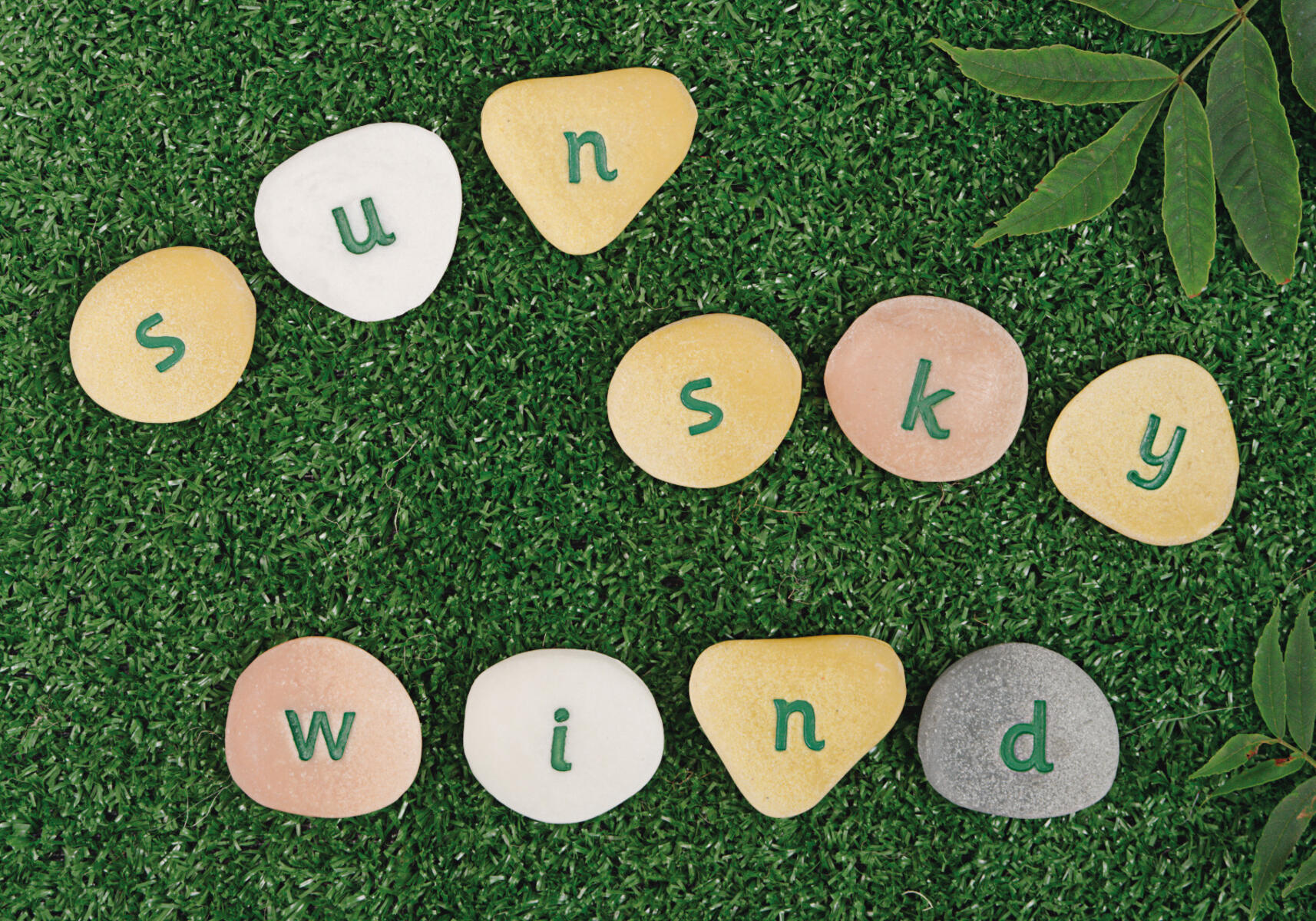 26 st/fp. En uppsättning stenar med små bokstäver a-z försänkta i stenarna. Stenarna ger en både taktil och visuell upplevelse för barnen när de övar på bokstäver. Börja på den gröna punkten och styr sedan fingret längs med pilens riktning. Barnen bygger det viktiga motoriska minnet och utvecklar de grundläggande rörelserna som behövs innan de kan få en flytande handstil. Stenarna kan användas både inom- och utomhus. Mått: 7,5-10,5 cm. PVC-fri. Från 2 år.
