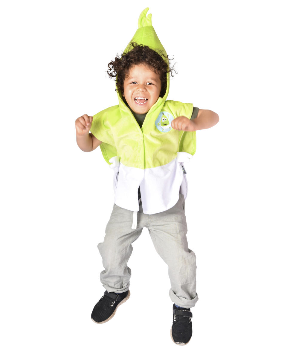 Mjuk kappa föreställande Doddo. Kardborreknäppning gör den enkel att ta av och på. Av mjuk polyesterplysch. Storlek 86-110. PVC-fri. Lagom för åldrarna 1-4 år.