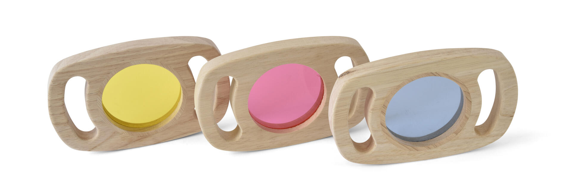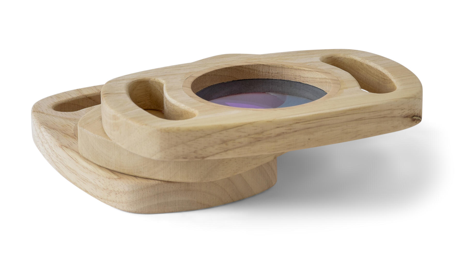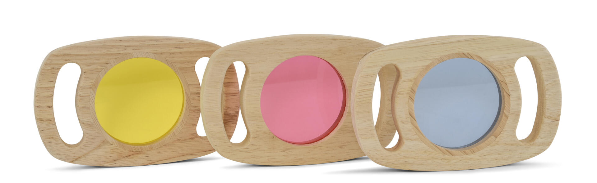 3 st/fp. Glittrande paneler som är lätta att hålla i. Vrid och vänd på panelerna för att få glittervätskan att röra på sig. Idealiska för sensorisk upptäckt och för att bredda det beskrivande ordförrådet. I färgerna lila, silver och guld. Av FSC-märkt trä. Från 1 år.