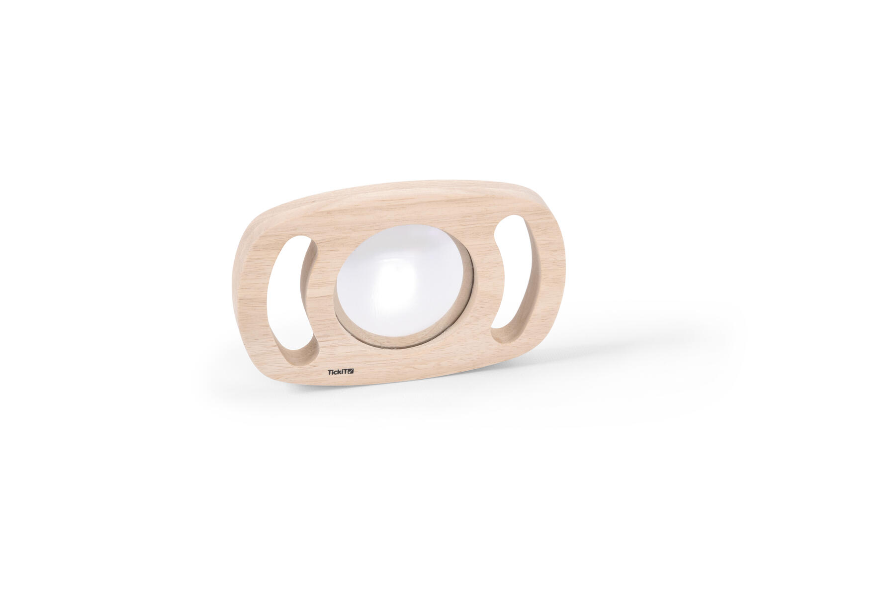 Fin spegel som är lätt att greppa för de yngre barnen. En sida är konkav och en sida är konvex. Mått: 18x12 cm. Ram av gummiträ. Spegel i akrylplast ø 8 cm. Av FSC-märkt trä. PVC-fri. Från 1 år.