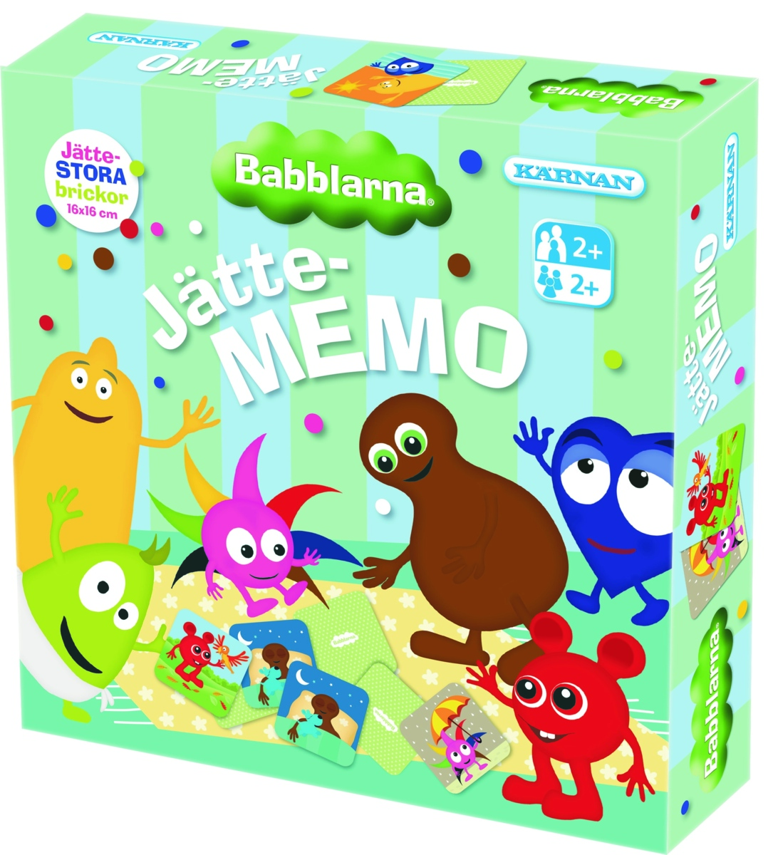 39 delar. Ett spel för de allra minsta spelarna där de i takt med sin utveckling kan spela på olika nivåer. Här har man roligt samtidigt som man lär sig nya saker, precis som alltid i Babblarnas värld! – härma djur, spela instrument, gör tecken, peka på färger och sjung sånger. Man tar små steg på egen hand, men kan när som helst be om hjälp från de andra spelarna. Alla barnen spelar tillsammans mot Klonk. Vuxna eller lite äldre barn måste vara med och hjälpa de yngsta spelarna. För 2-4 spelare från 2 år. Speltid ca 15 minuter. Innehåll: 36 kort, 2 spelarbrickor, färgtärning och spelregler. Ingående råvara FSC-märkt. PVC-fri.