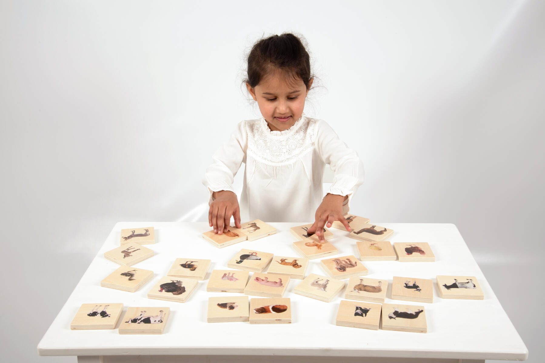 Ett spel som tränar barnens syn och reflexer och lär dem att skilja mellan olika bilder. Den spelare som parar ihop flest kort och bilder vinner. Bitarna har lite större bilder och kraftig kvalitet för att passa mindre barn. Med 1 spelbräde och 36 bilder. För 2–4 spelare. Speltid ca 20 min. Av ingående FSC-märkt kartong. PVC-fri. Från 2 år.