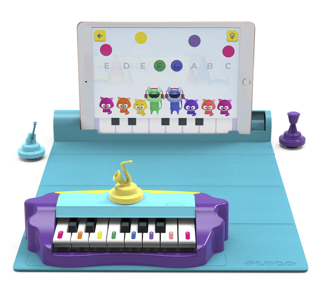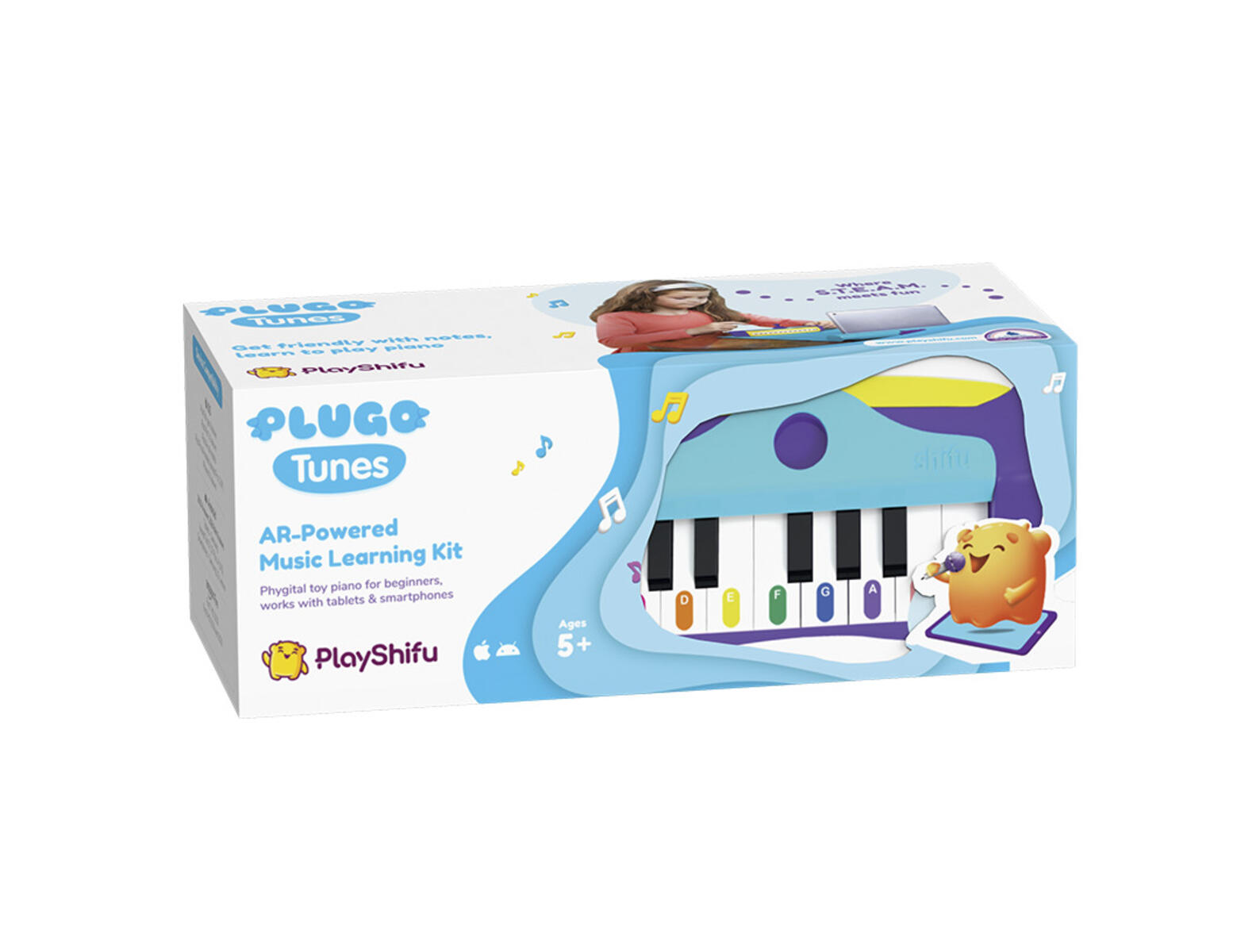 Shifu Plugo är ett AR-drivet spelsystem som består av en spelkontroll, utbytbara spelsatser och en tillhörande app. Varje spelsats erbjuder åldersanpassade pedagogiska spel för barn i åldrar 4-10 med berättelsebaserade utmaningar. Med Plugo Tunes får du bekanta dig med noter, lära dig spela populära låtar och komponera musik. Öva med Plugo Tunes och övergå till riktiga tangenter på ett smidigt sätt. 8 olika språk inklusive svenska. PVC-fri.