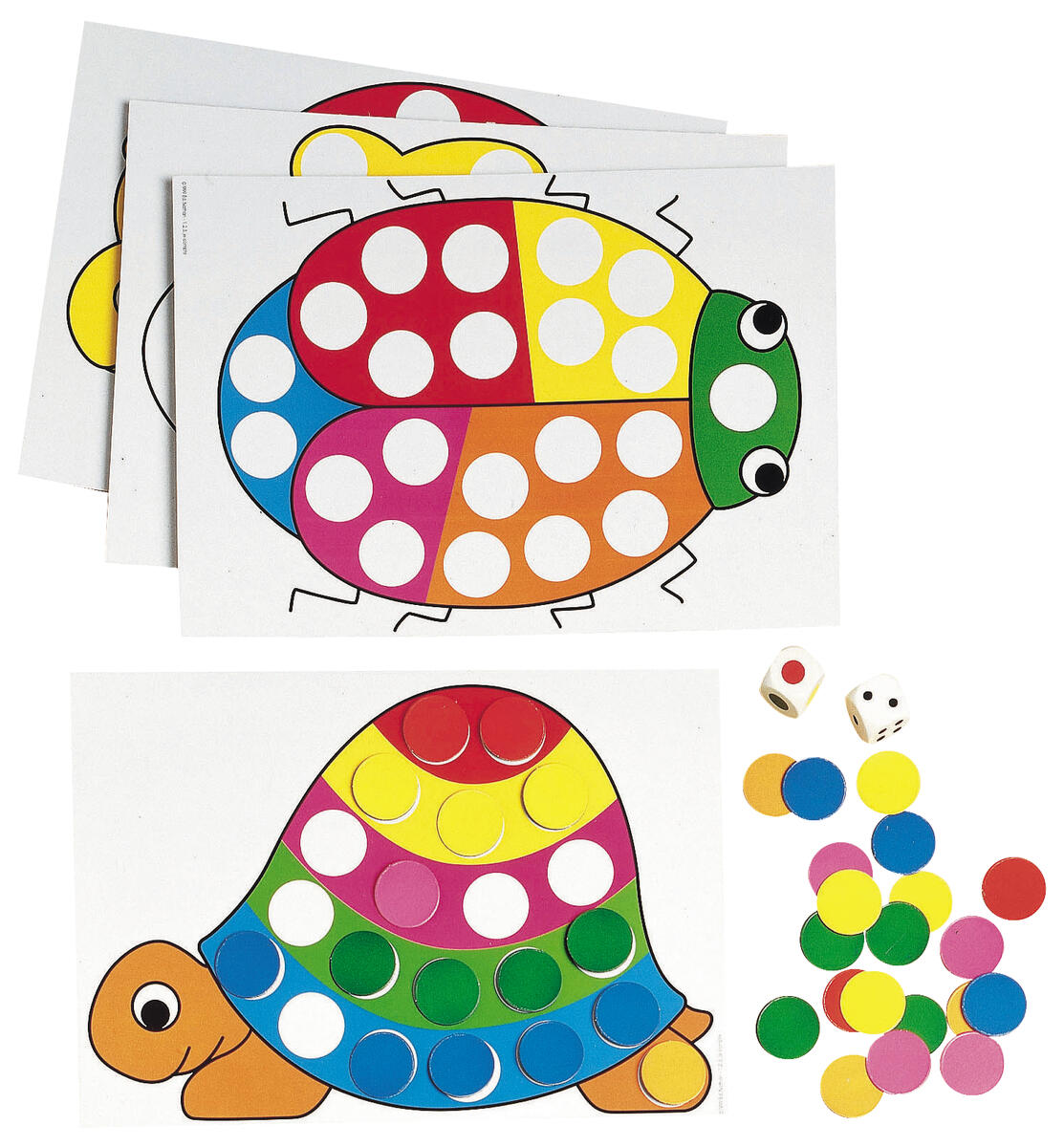 4 magnetiska brickor och 84 pjäser som håller allt på plats. Ett roligt och lärorikt spel som tränar färger och enkel räkning upp till 6. Turas om att slå siffer- och färgtärningen; den som fyllt sin bricka först har vunnit. Speltid ca 15 min. Mått på brickor: 33x23 cm. För 1–4 spelare. PVC-fri. Från 3 år.